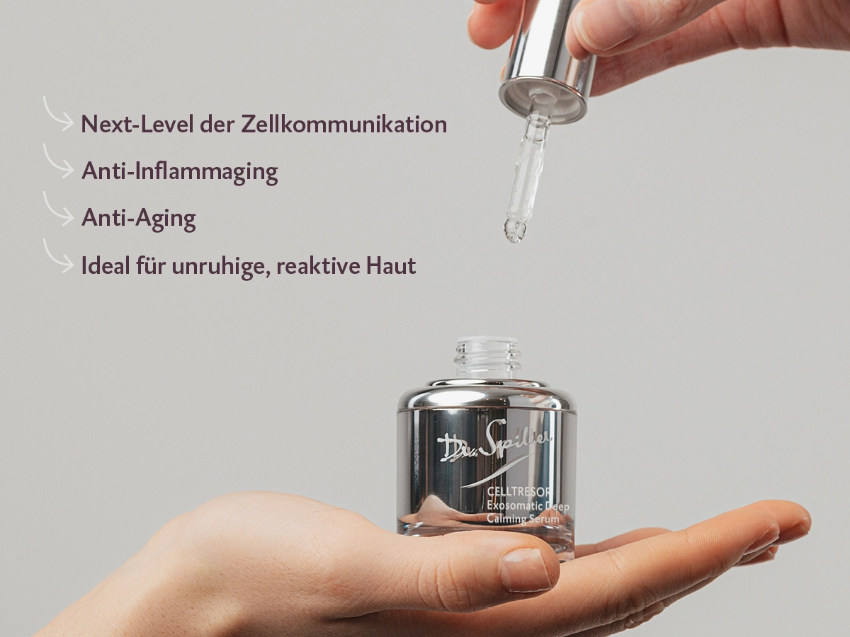 Dr. Spiller CELLTRESOR Exosomatic Deep Calming Serum is based on an innovative active ingredient technology inspired by exosomes. It supports the skin’s inherent regeneration, reduces inflammatory processes and protects against skin aging caused by environmental factors. The result: Resilient, deeply soothed and visibly revitalized skin.